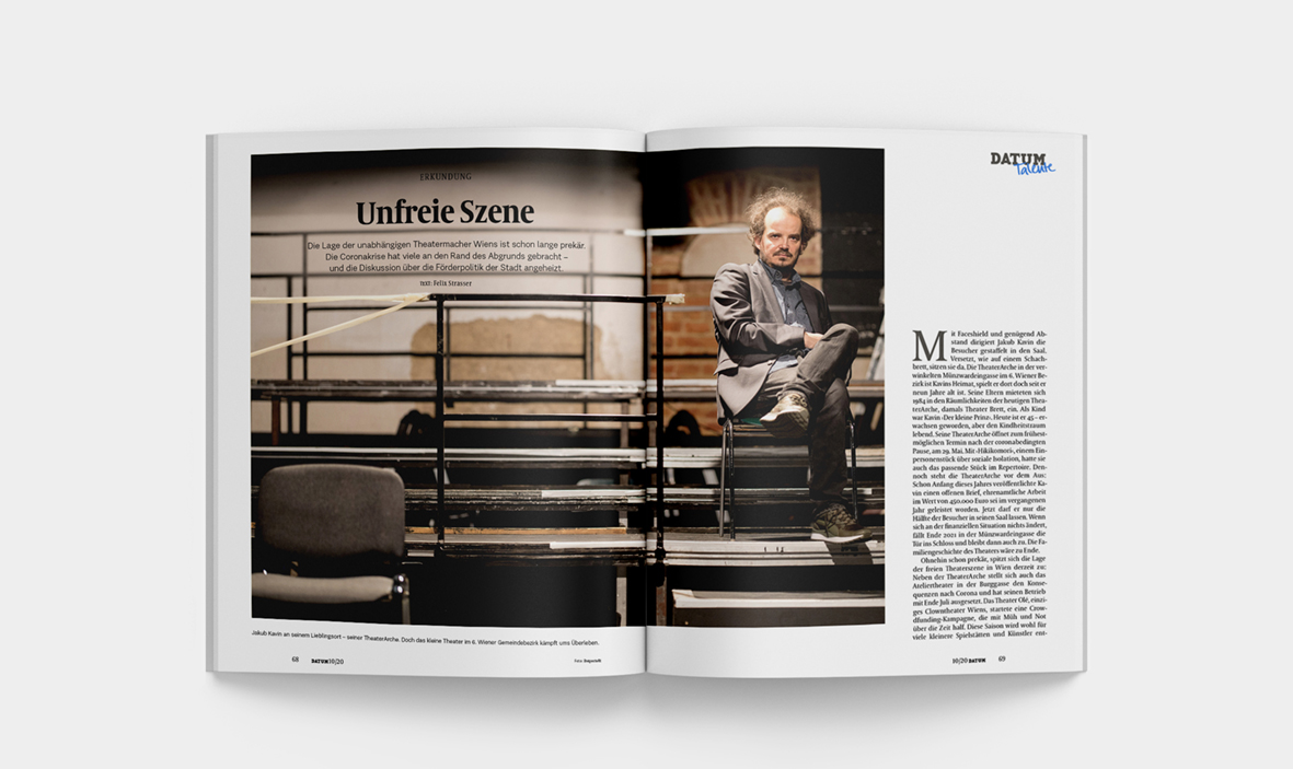 Mit Faceshield und genügend Abstand dirigiert Jakub Kavin die Besucher gestaffelt in den Saal. Versetzt, wie auf einem Schachbrett, sitzen sie da. Die TheaterArche in der verwinkelten Münzwardeingasse im 6. Wiener Bezirk ist Kavins Heimat, spielt er dort doch seit er neun Jahre alt ist. Seine Eltern mieteten sich 1984 in den Räumlichkeiten der heutigen TheaterArche, damals Theater Brett, ein. Als Kind war Kavin › Der kleine Prinz ‹. Heute ist er 45 – erwachsen geworden, aber den Kindheitstraum lebend. Seine TheaterArche öffnet zum frühestmöglichen Termin nach der coronabedingten Pause, am 29. Mai. Mit › Hikikomori ‹, einem Einpersonenstück über soziale Isolation, hatte sie auch das passende Stück im Repertoire. Dennoch steht die TheaterArche vor dem Aus : Schon Anfang dieses Jahres veröffentlichte Kavin einen offenen Brief, ehrenamtliche Arbeit im Wert von 450.000 Euro sei im vergangenen Jahr geleistet worden. Jetzt darf er nur die Hälfte der Besucher in seinen Saal lassen. Wenn sich an der finanziellen Situation nichts ändert, fällt Ende 2021 in der Münzwardeingasse die Tür ins Schloss und bleibt dann auch zu. Die Familiengeschichte des Theaters wäre zu Ende.