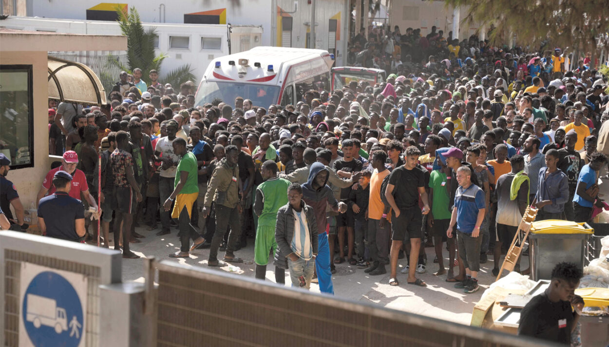 Ein dichtes Männermeer verschluckt fast einen Krankenwagen. Vorne ein Zaun, links zwei Polizisten: Gemeinsam halten sie die Meute in Schach. Das Foto von Zakaria Abdelkafi alarmiert, aber erscheint doch bekannt. Entstanden Mitte September auf der italienischen Insel Lampedusa, entspricht es der gängigen Darstellung von Migranten – wie auch der erste Absatz dieses Textes.