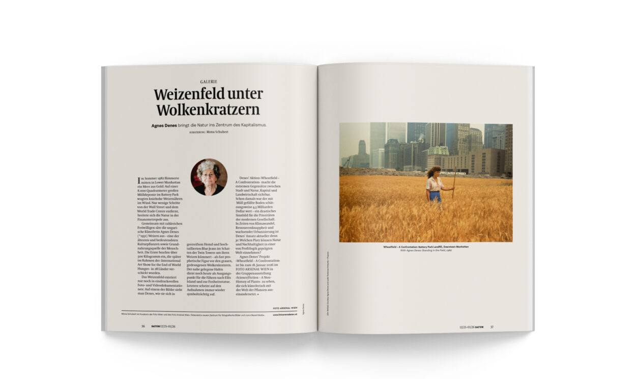 Agnes Denes’ Projekt ›Wheatfield – A Confrontation‹ ist bis zum 18. Januar 2026 im FOTO ARSENAL WIEN in der Gruppenausstellung ›Science/Fiction – A Non-History of Plants‹ zu sehen, die sich künstlerisch mit der Welt der Pflanzen auseinandersetzt. •