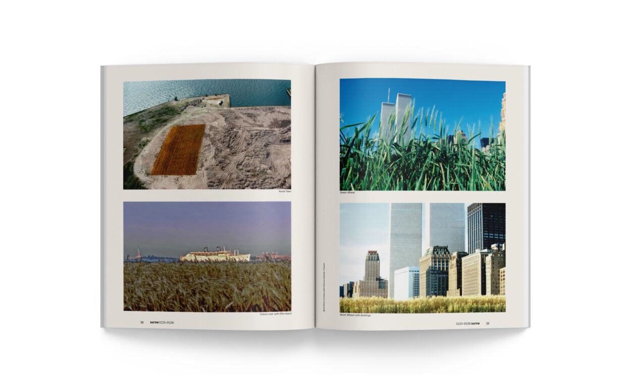 Gemeinsam mit zahlreichen Freiwilligen säte die ungarische Künstlerin Agnes Denes (*1931) Weizen aus – eine der ältesten und bedeutendsten Kulturpflanzen sowie Grundnahrungsquelle der Menschheit. Die Ernte brachte über 500 Kilogramm ein, die später im Rahmen der ›International Art Show for the End of World Hunger‹ in 28 Länder verschickt wurden.