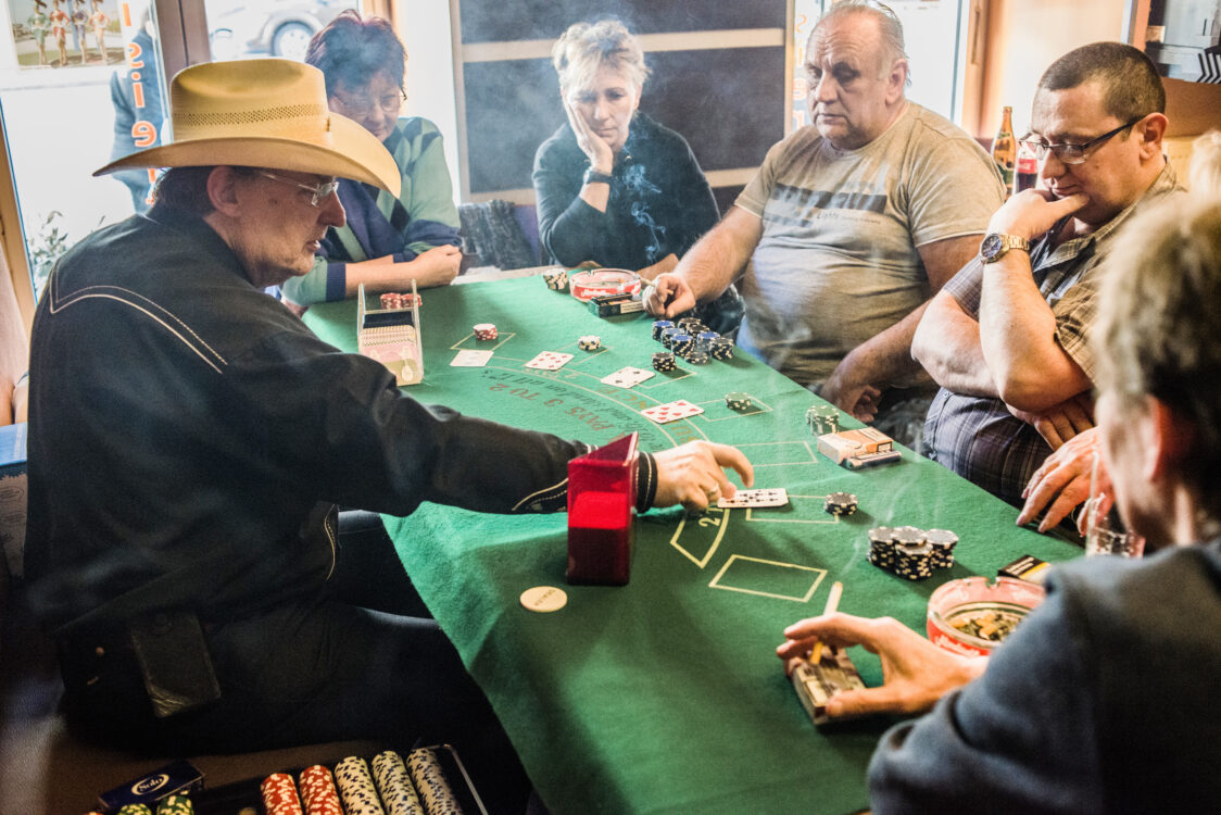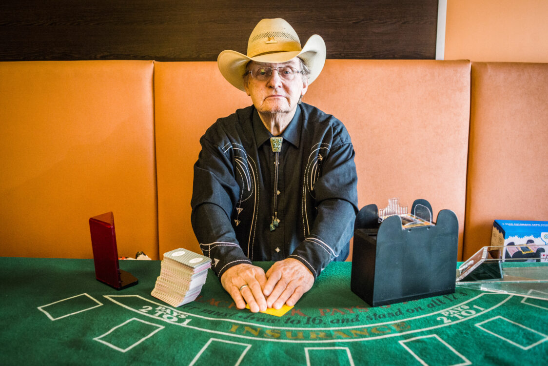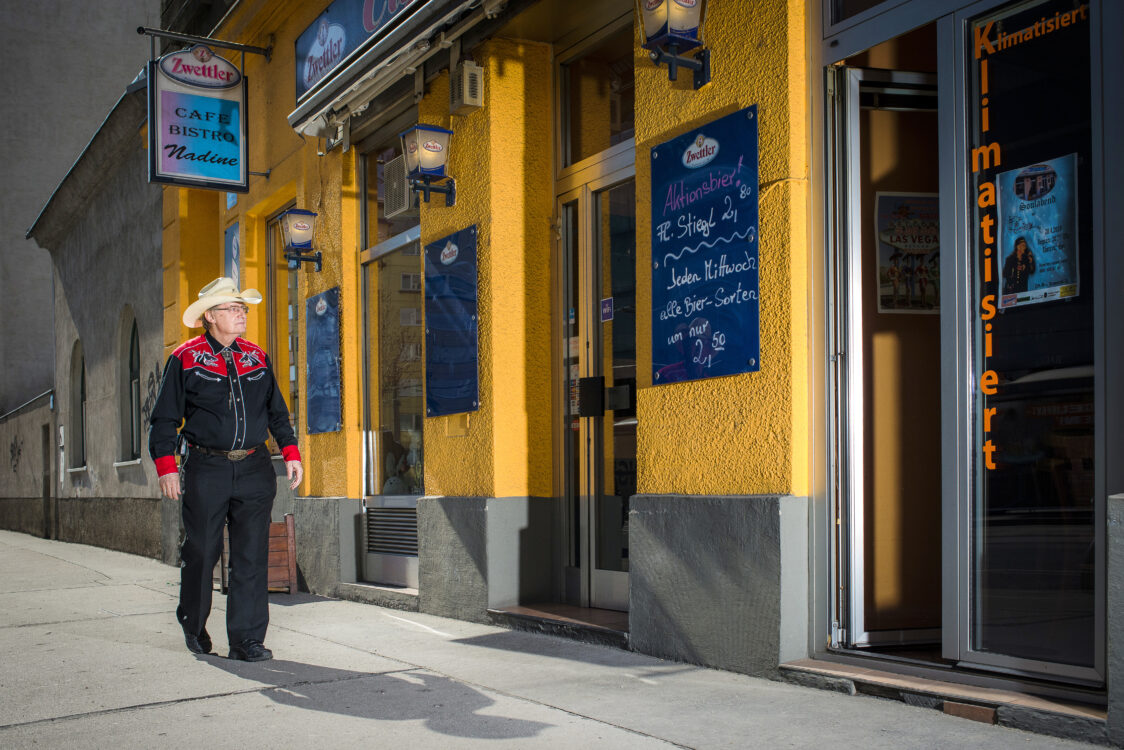 Ein vertrautes Beisl-Stillleben also – wenn da nicht in einer Ecke des Lokals ein Cowboy sitzen würde. Ausladender, weizengelber Stetson-Hut, schwarz-rotes Westernhemd samt aufgestickten, silbern funkelnden Ponys, reichlich Metall am Gürtel, was aber nicht der Grund dafür ist, dass ihn die sechs ihm gegenüber an zusammengeschobenen Tischen aufgefädelten Gäste aufmerksam taxieren. So stapft der Mann schon seit Jahren durch die Stadt. Es ist Black-Jack-Time im Nadine, und der ältere Herr im Texas-Style ist nicht nur der Croupier, sondern eine Institution: in der Brigittenau, in Österreich, in den USA. Kein Wunder also, dass sich so einer Walter Nevada nennt.
