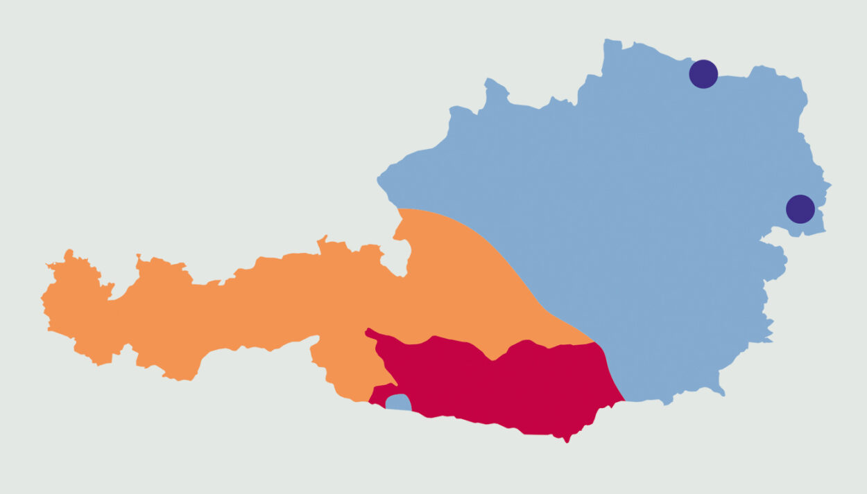 Die gibt es (orange) an manchen Orten aber nicht und in (rot) Kärnten gab es sogar überhaupt eine seltsame Befragung wider die Windräder. Nicht zuletzt, weil sie als schädlich und schändlich, als Agenten des Wokismus gelten.