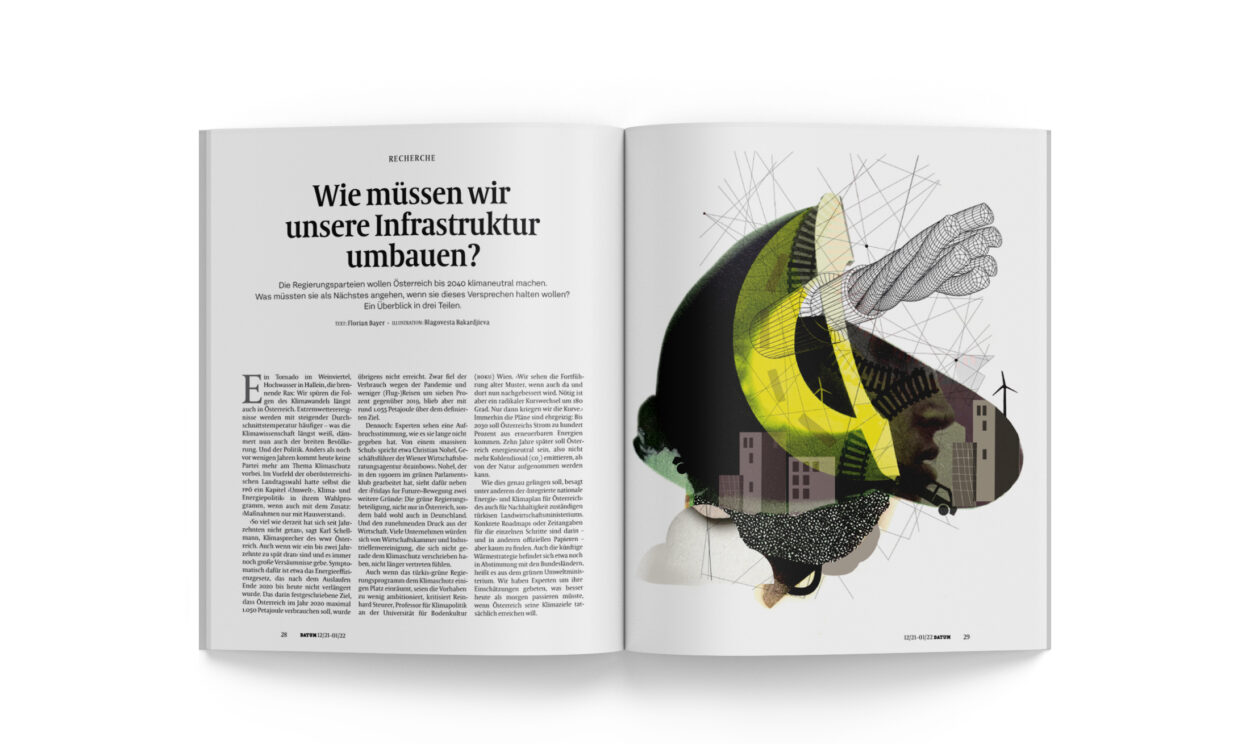 Auch wenn das türkis-grüne Regierungsprogramm dem Klimaschutz einigen Platz einräumt, seien die Vorhaben zu wenig ambitioniert, kritisiert Reinhard Steurer, Professor für Klimapolitik an der Universität für Bodenkultur (boku) Wien. ›Wir sehen die Fortführung alter Muster, wenn auch da und dort nun nachgebessert wird. Nötig ist aber ein radikaler Kurswechsel um 180 Grad. Nur dann kriegen wir die Kurve.‹ Immerhin die Pläne sind ehrgeizig: Bis 2030 soll Österreichs Strom zu hundert Prozent aus erneuerbaren Energien kommen. Zehn Jahre später soll Österreich energieneutral sein, also nicht mehr Kohlendioxid (co2) emittieren, als von der Natur aufgenommen werden kann.
