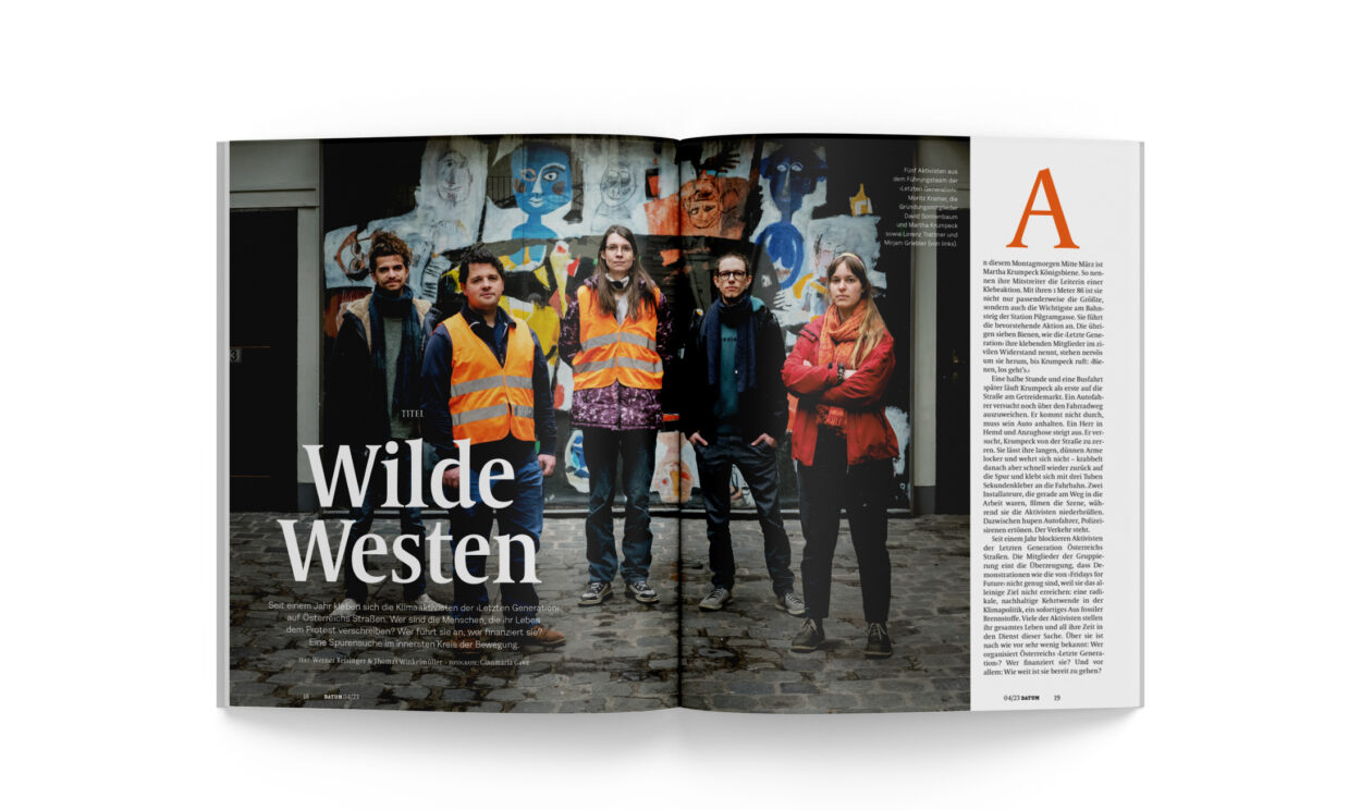 Seit einem Jahr kleben sich die Klimaaktivisten der ›Letzten Generation‹ auf Österreichs Straßen. Wer sind die Menschen, die ihr Leben dem Protest verschreiben? Wer führt sie an, wer finanziert sie? Eine Spurensuche im innersten Kreis der Bewegung.
