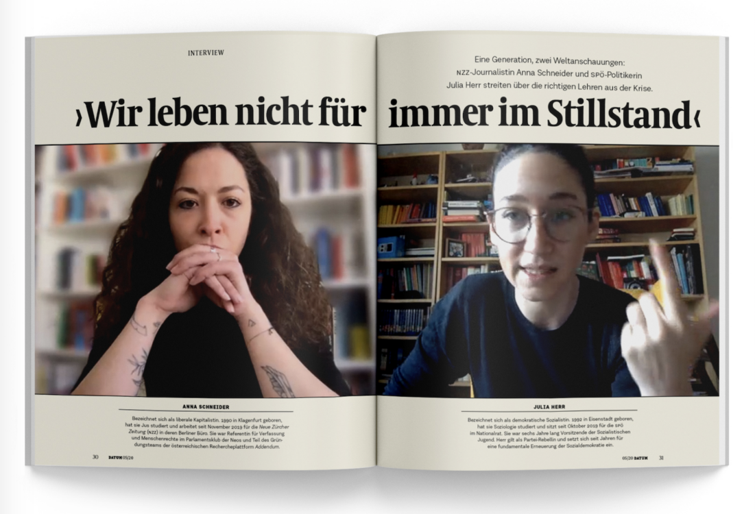 Eine Generation, zwei Weltanschauungen: NZZ-Journlistin Anna Schneider und SPÖ-Politikerin Julia Herr streiten über die richtigen Lehren aus der Krise.