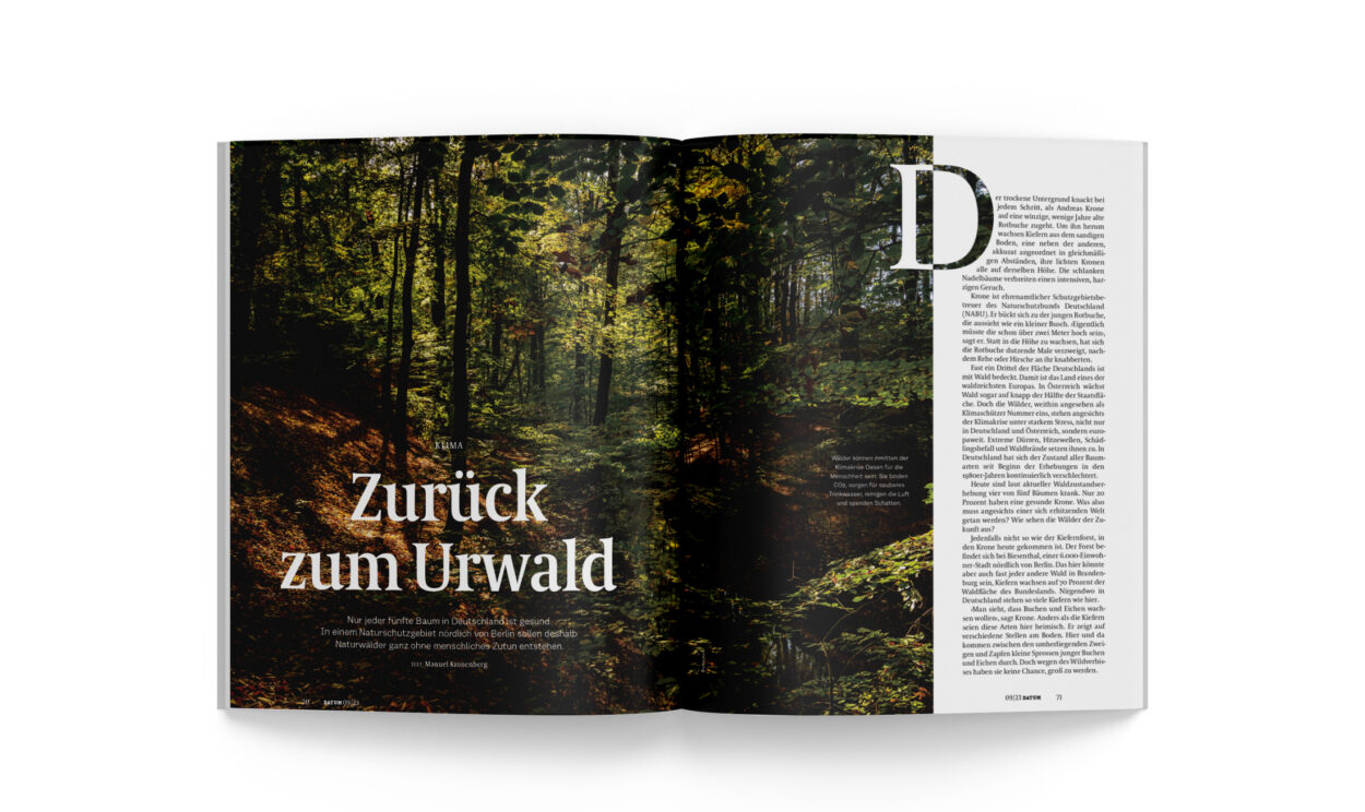 Der trockene Untergrund knackt bei jedem Schritt, als Andreas Krone auf eine winzige, wenige Jahre alte Rotbuche zugeht. Um ihn herum wachsen Kiefern aus dem sandigen Boden, eine neben der anderen, akkurat angeordnet in gleichmäßigen Abständen, ihre lichten Kronen alle auf derselben Höhe. Die schlanken Nadelbäume verbreiten einen intensiven, harzigen Geruch.